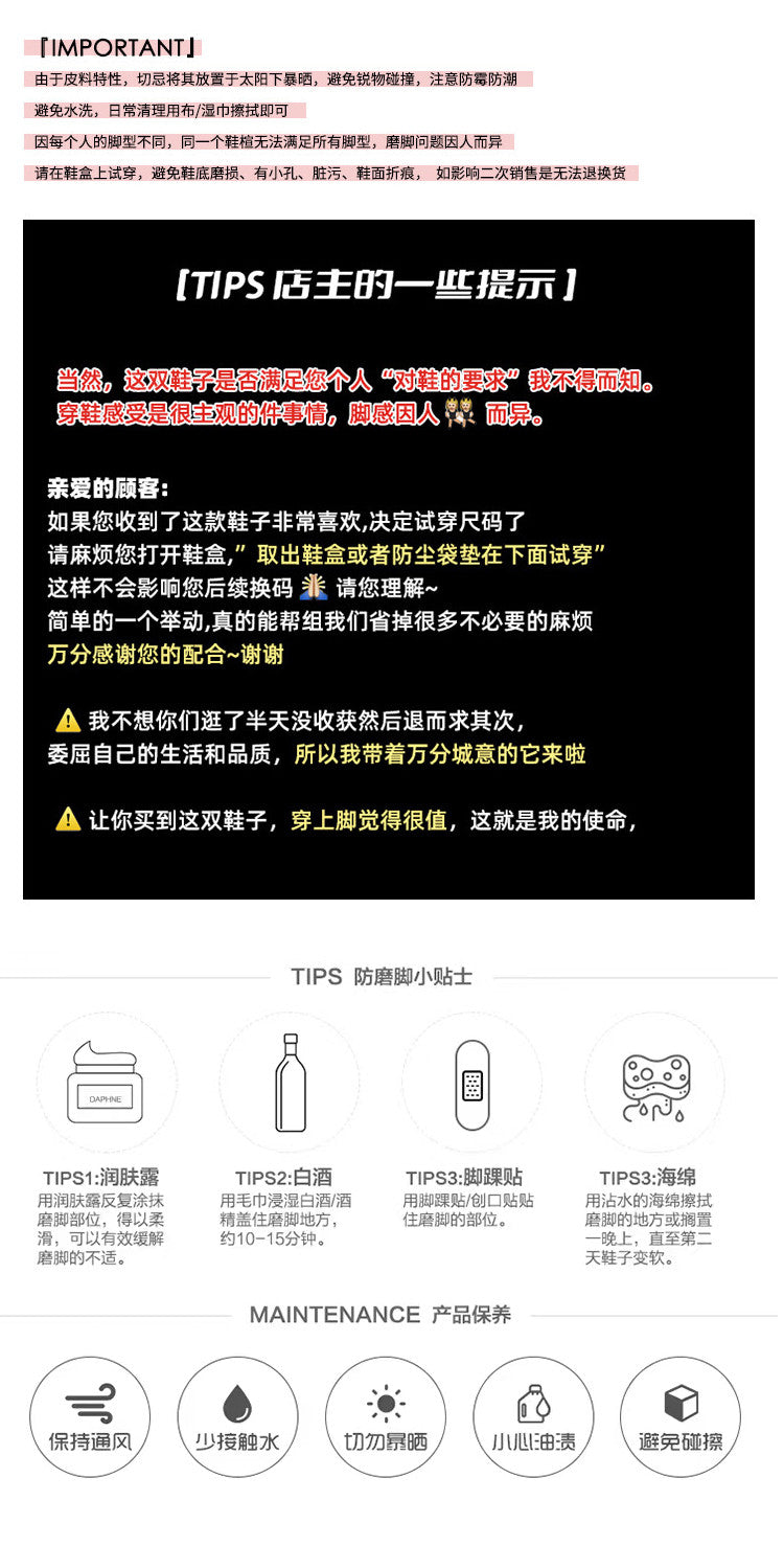 1: Quality triple guarantee, within one month if the heel, sole, or upper breaks, we will replace it with a new one and provide lifetime maintenance